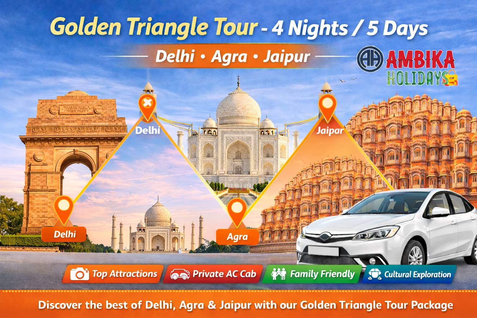 New Delhi(1 N) Agra(1 N) Jaipur(2 N)