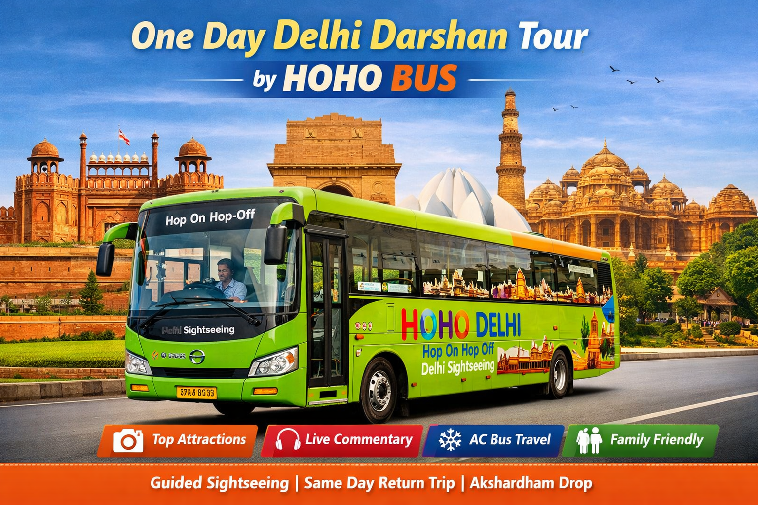One Day Delhi Darshan Tour By HOHO Bus